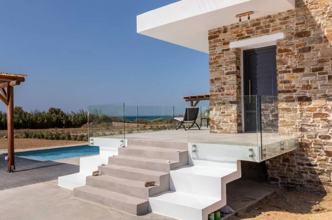 Near the sea there is a modern villa surrounded by Bamboo ready to welcome all those who love the blue waters of the Aegean, and are looking for new experience. It is just 90 meters from the sea with an amazing view which you can enjoy from its garden.